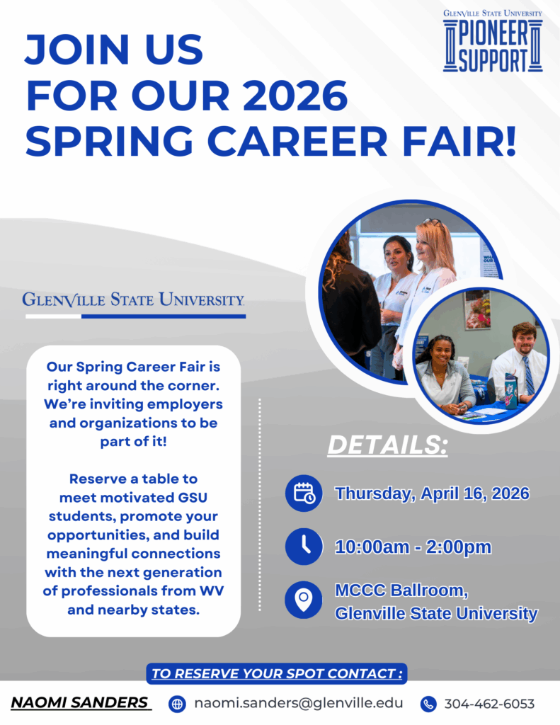 Glenville State Spring Career Fair-April 16, 2026 Read More »